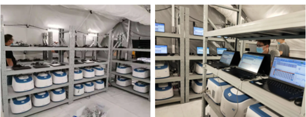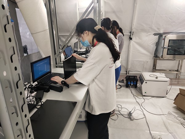 25日,在3組“獵鷹號”氣膜實驗室的儀器設備安裝完成后,技術服務團隊又馬不停蹄將新送達的儀器設備安裝到另外3組“獵鷹號”氣膜實驗室。與此同時,他們還需兼顧已啟用的3組實驗室的儀器設備運行、實驗人員操作培訓等。