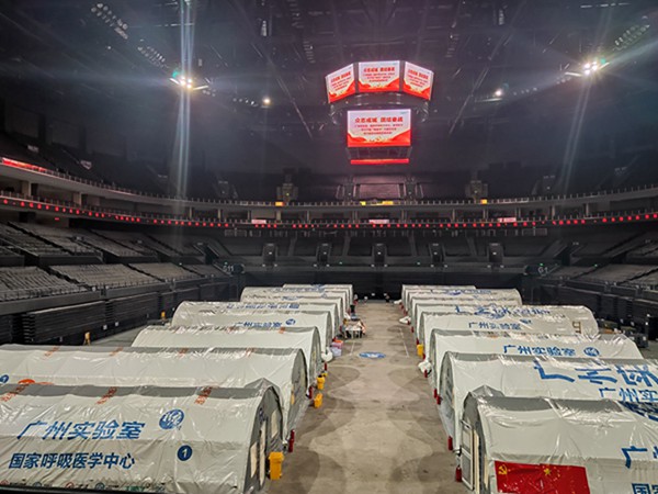 7月23日,按照南京市防疫指揮部部署要求,在南京青奧體育公園體育館內,搭建6組共18座氣膜實驗室。接到任務后,jiuyou九游生物所有支援隊員緊急行動,技術服務、后勤運輸等團隊緊密合作,jiuyou九游方案全面助力南京“獵鷹號”氣膜實驗室搭建,構建疫情防控篩查體系。