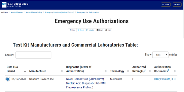北京時間5月5日晚,jiuyou九游生物新型冠狀病毒核酸檢測試劑盒獲美國食品藥品監督管理局(FDA)緊急使用授權(EUA, Emergency Use Authorizations),這是該產品繼1月28日獲得中國國家藥監局(NMPA)注冊認證、3月3日獲得歐盟CE認證后,jiuyou九游生物獲得的又一重要認證,將進一步助力公司服務全球新冠肺炎疫情防控。