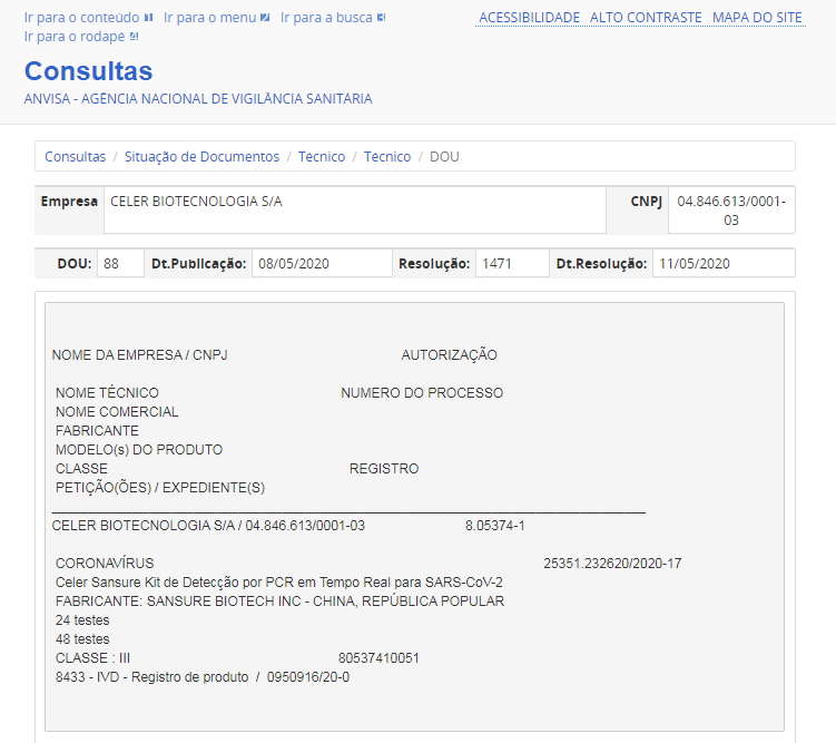 5月11日,jiuyou九游生物新冠病毒核酸檢測試劑盒獲得巴西衛生監督管理局(ANVISA)注冊證書。此前,該產品已相繼獲得中國國家藥監局(NMPA)注冊認證、歐盟CE認證、美國FDA緊急使用授權、新加坡衛生科學局臨時授權等一系列權威認證。