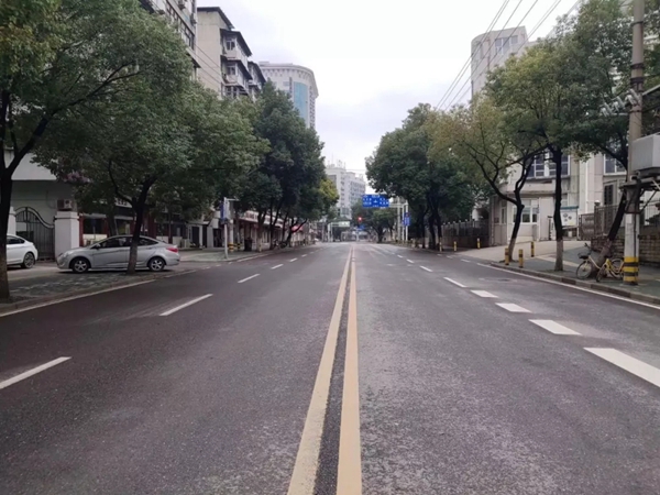 今日凌晨,武漢所有住宅小區(qū)實(shí)行封閉管理之后,街上不見行人。